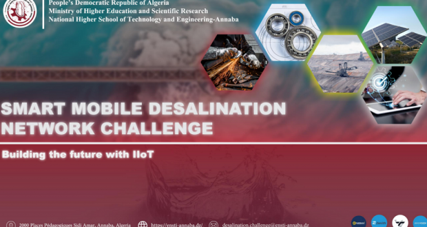 تنظم المدرسةالوطنية العليا للتكنولوجيا والهندسة بعنابة فعاليات الطبعة الأولى للمسابقة الوطنية الجامعية SMDN Challenge 2025 “SMART MOBILE DESALINATION NETWORK CHALLENGE – Building the future with IIoT” في الفترة الممتدة من 30 نوفمبر 2024 إلى غاية 19 ماي 2024 ترسل المشاركات قبل تاريخ 20 جانفي 2024.(استمارة المشاركة) البطاقة التقنية – النسخة الفرنسيةتنزيل البطاقة التقنية-النسخة الإنجليزيةتنزيل
